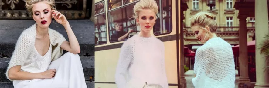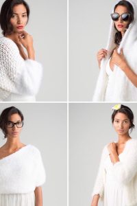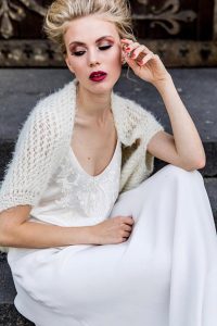 Die erste Kollektion „The Look of Love“ beinhaltet umschmeichelnde Braut-Boleros & Tücher, zarte Braut-Capes und Braut-Jacken. Selbstverständlich werden dafür nur edelste und zarteste Garne wie Mohair, Seide, reine Wolle oder Cashmere verwendet.